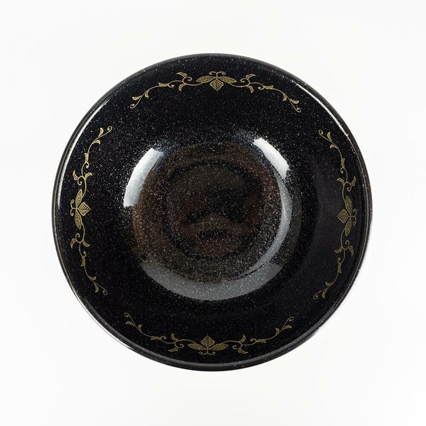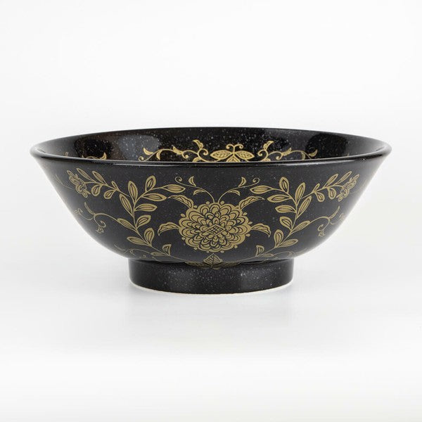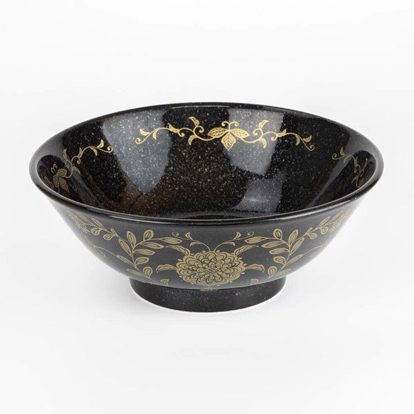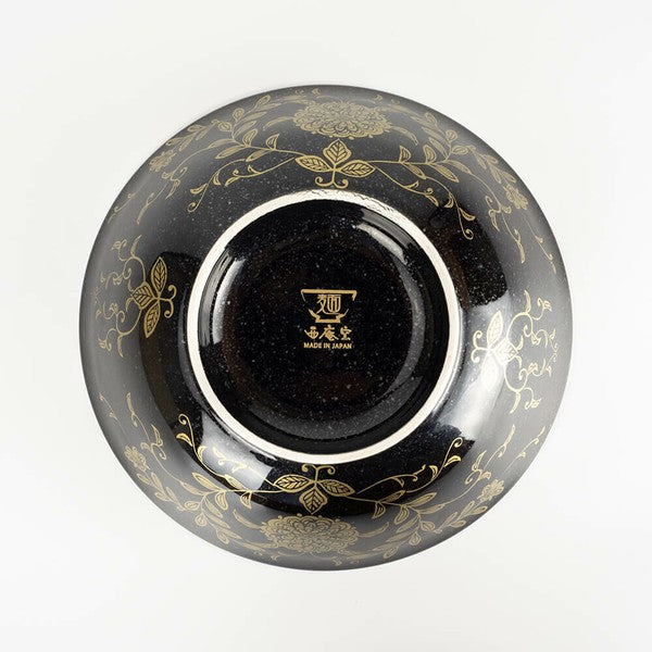 金彩花唐草 反高台22cm麺鉢 黒御影