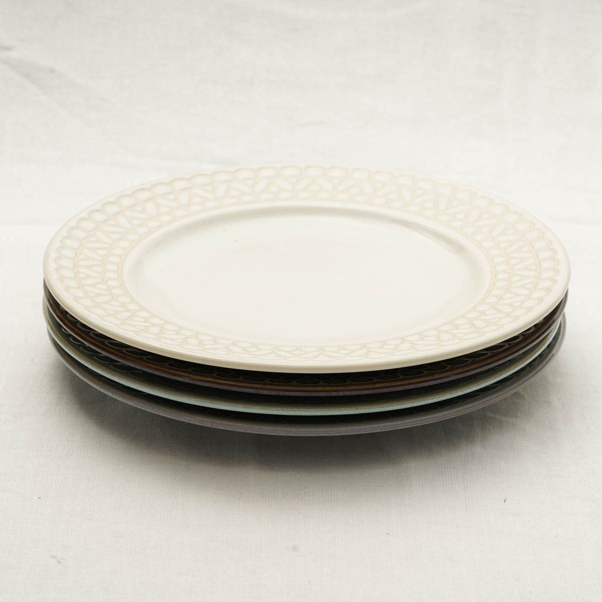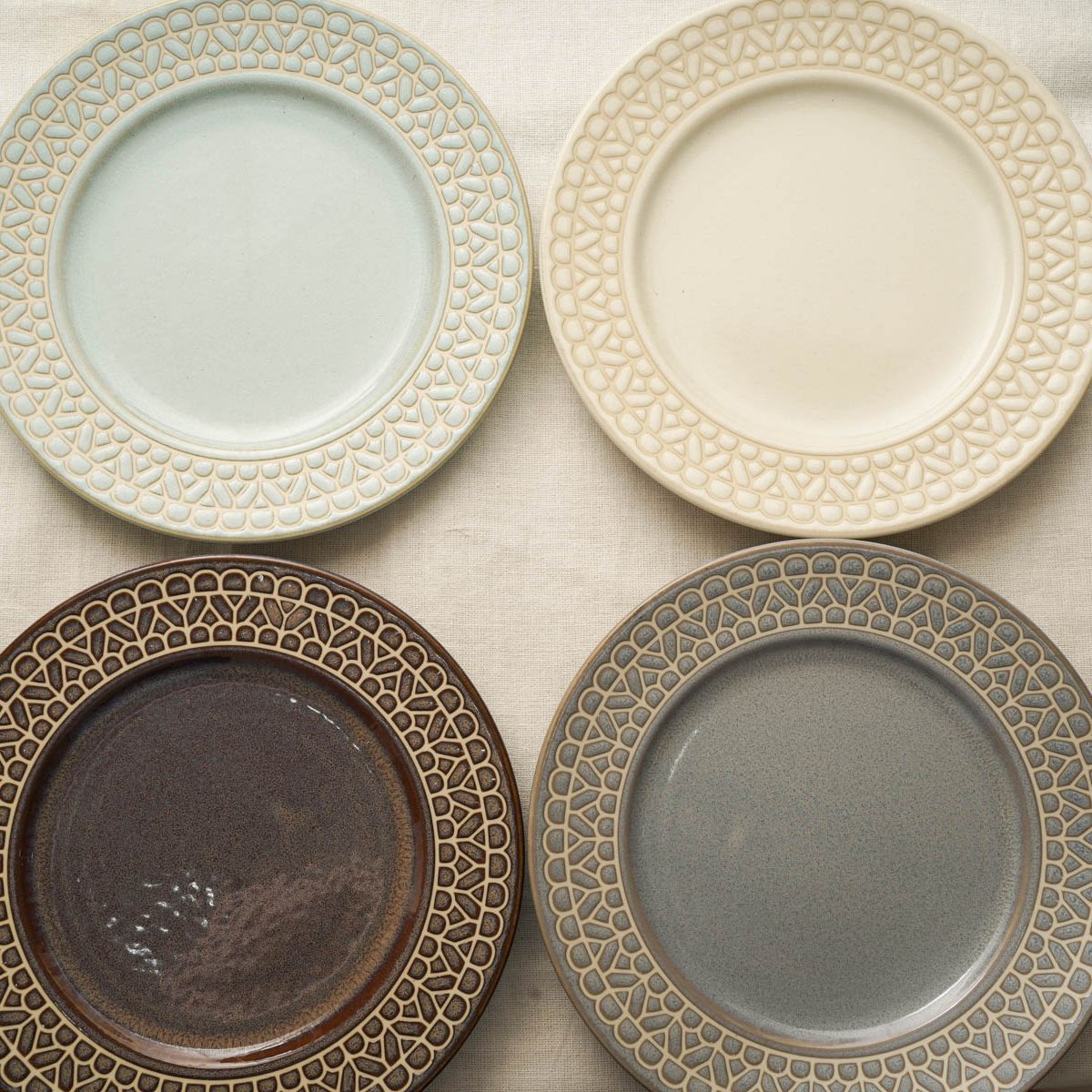 レース4色 プレートL パスタ皿カレー皿 4枚セット ホワイト/ブラウン/ブルー/グレー 23.5センチ