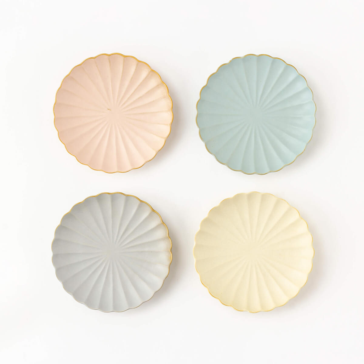 明るいパステルカラーに落ち着いたマットな質感が、おしゃれでかわいいお皿です。