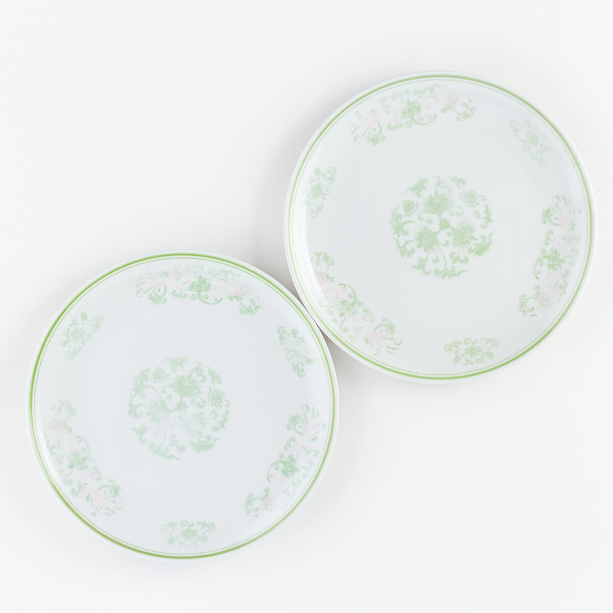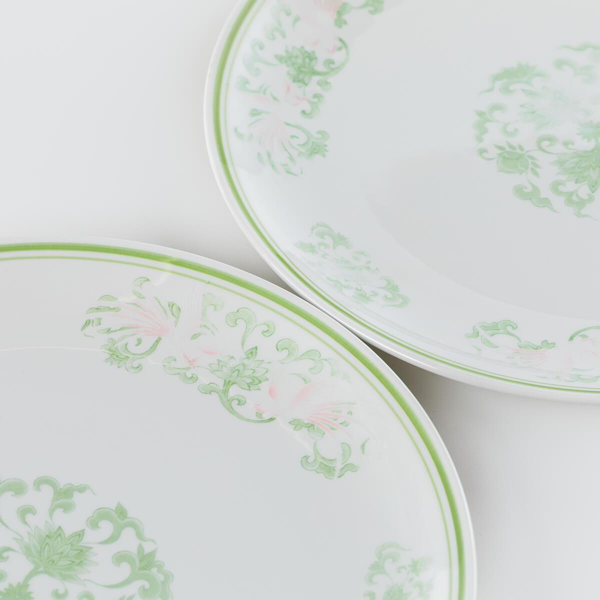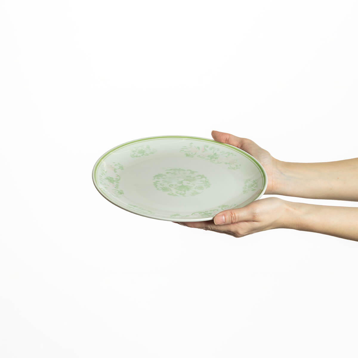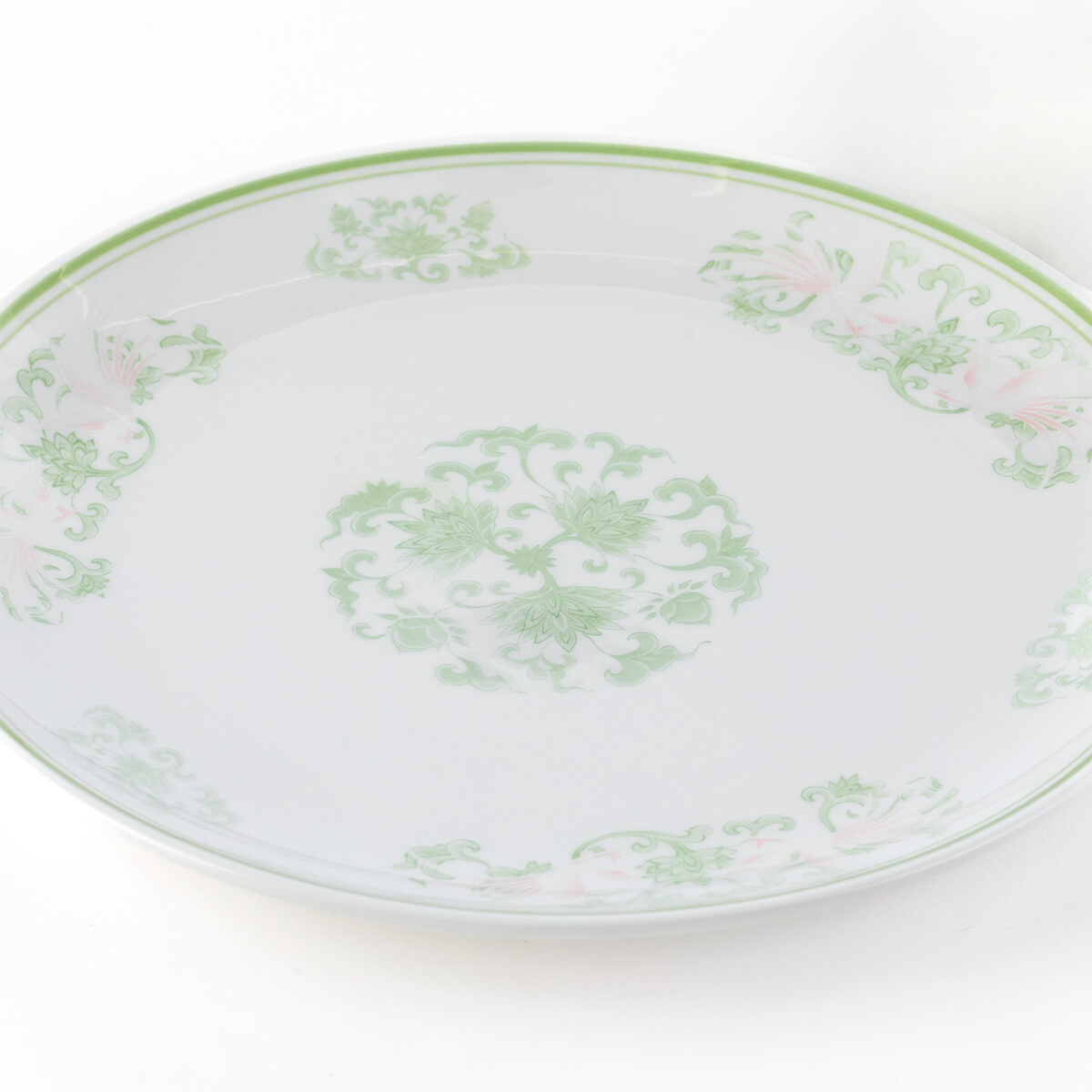 薄い緑の中華風花柄の入ったチョップ皿 数量限定